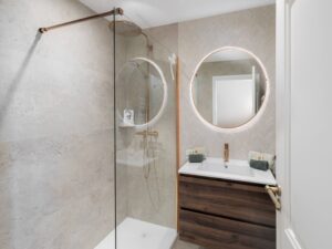 Bedroom 4 | 2 | QUEEN SIZE BED, AIR CONDITIONING | Double bedroom with large double bed and ensuite shower room with shower, vanity. |
