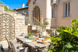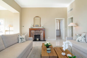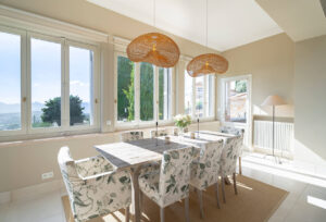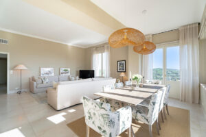 Living / Dining room | Spacious and bright living room with large smart TV. A beautiful large dining table that can comfortably accommodate 6 to 8 guests. | ||