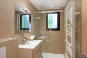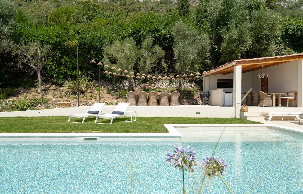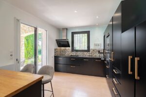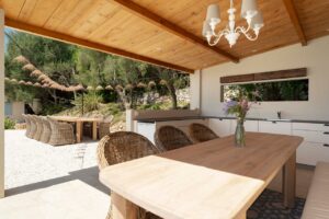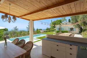 Kitchen | Fully-equipped modern kitchen with Neff appliances, Nespresso, Fridge/Freezer and ice maker - the utility room with washing machine and dryer is off the kitchen area. Large double-doors open onto a covered al-fresco dining area. |