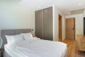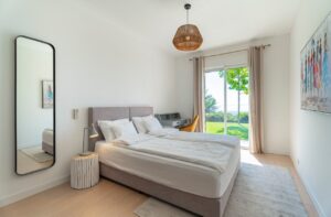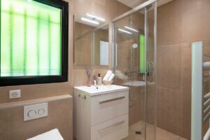 Bedroom 1 | 2 | Airconditioned 140cm double bed with fitted wardrobe - large patio doors leading out to a quiet area of the garden. ENSUITE shower room with basin and loo. | |