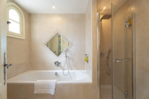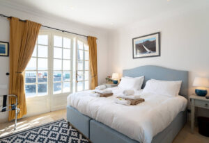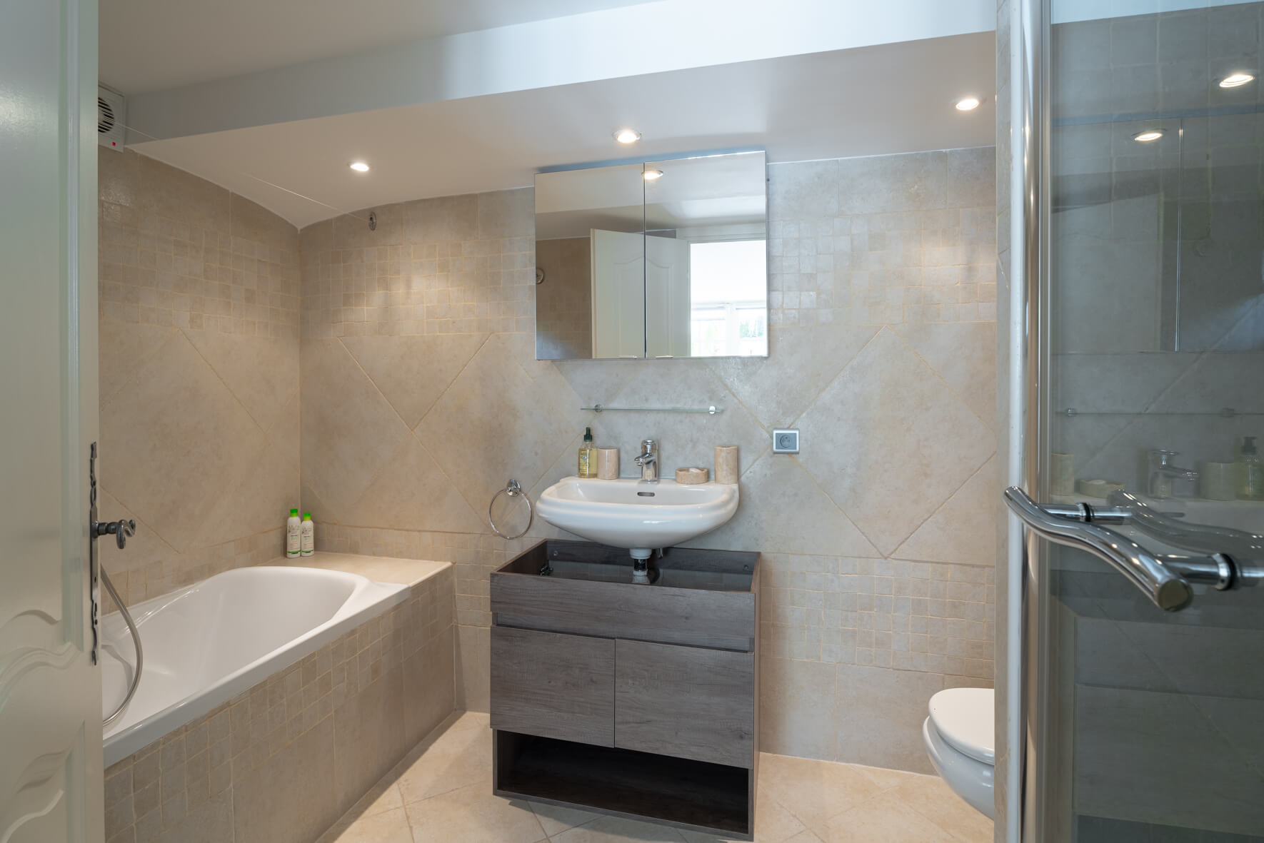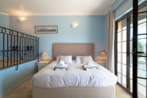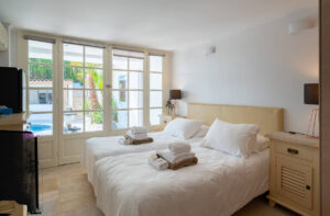 Bedroom 6 4 2 King size beds, ensuite bathroom with double jacuzzi bathtub and walk in shower, access to garden.