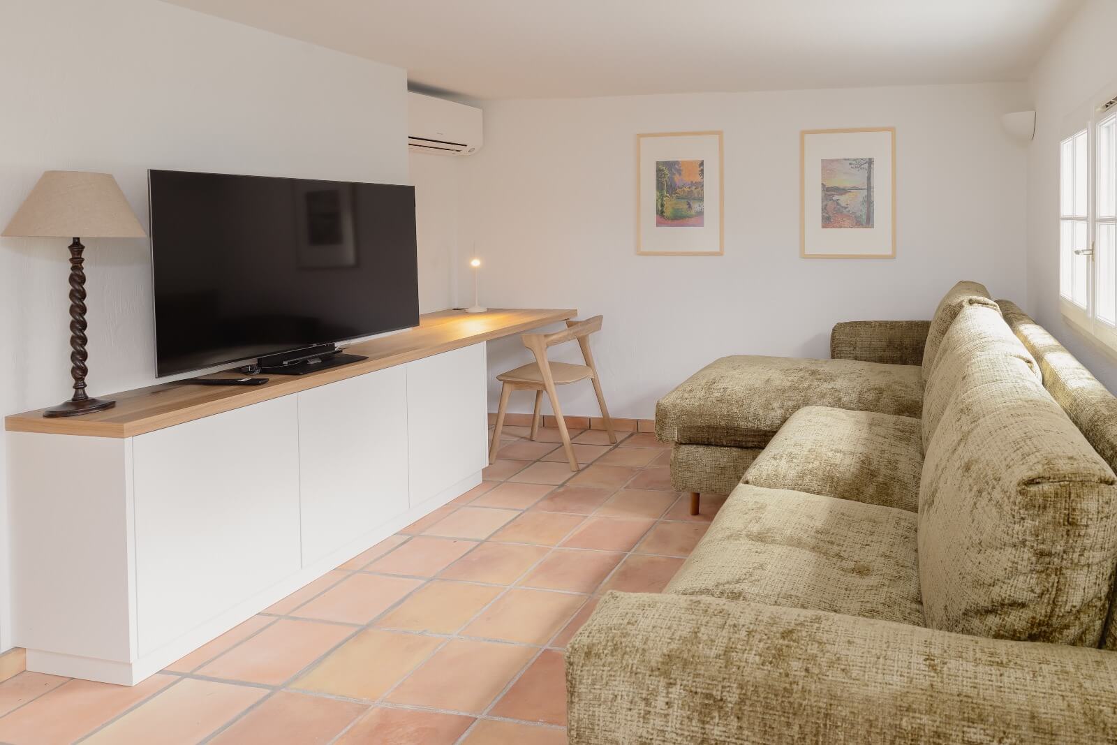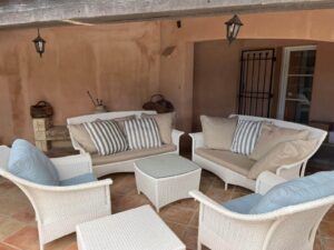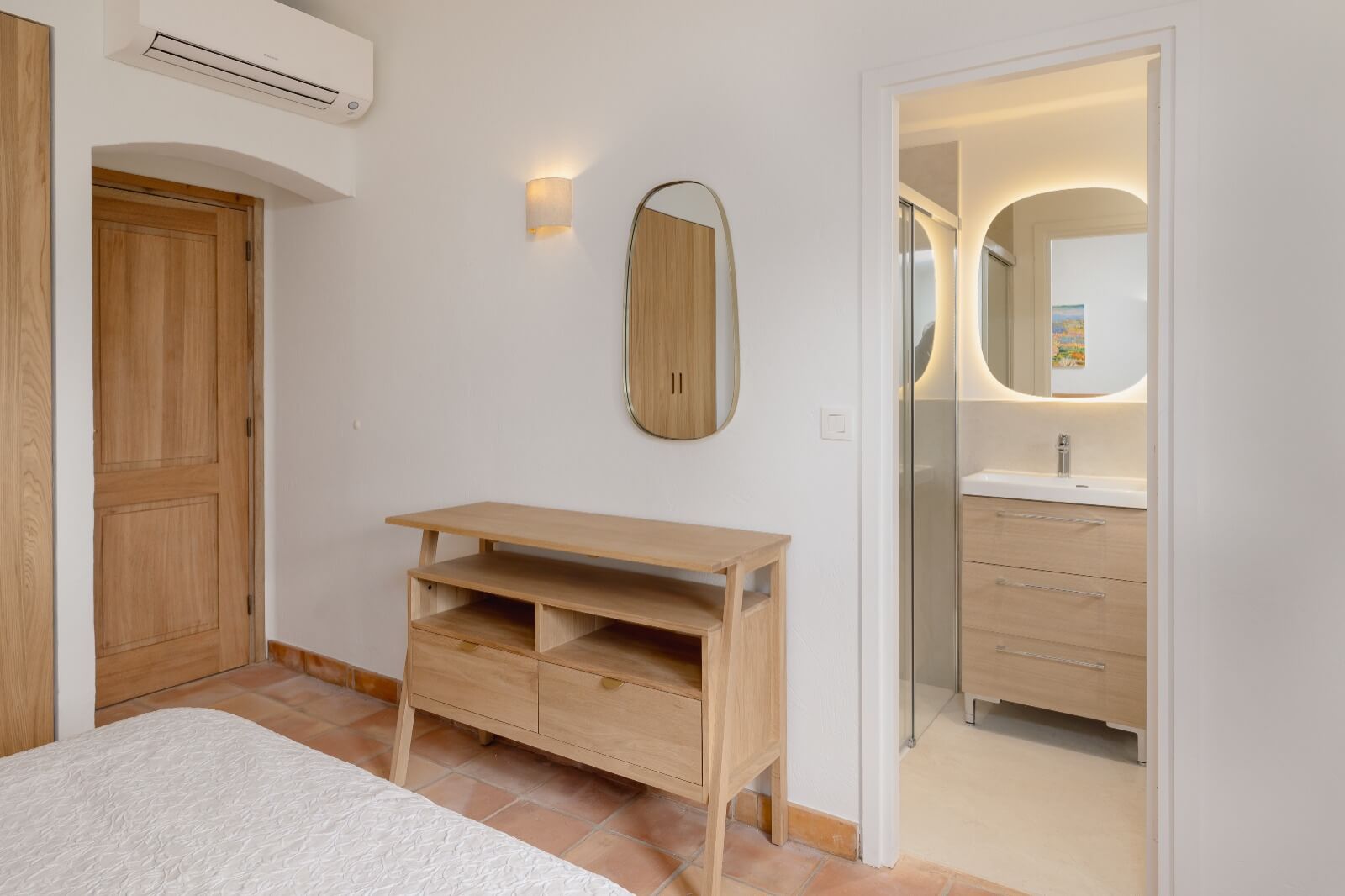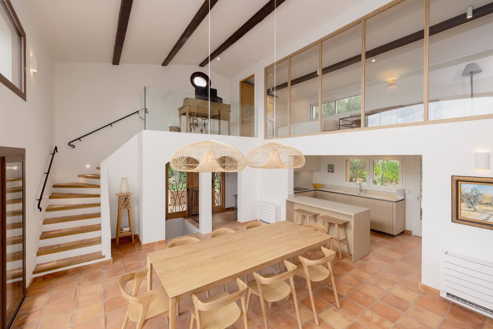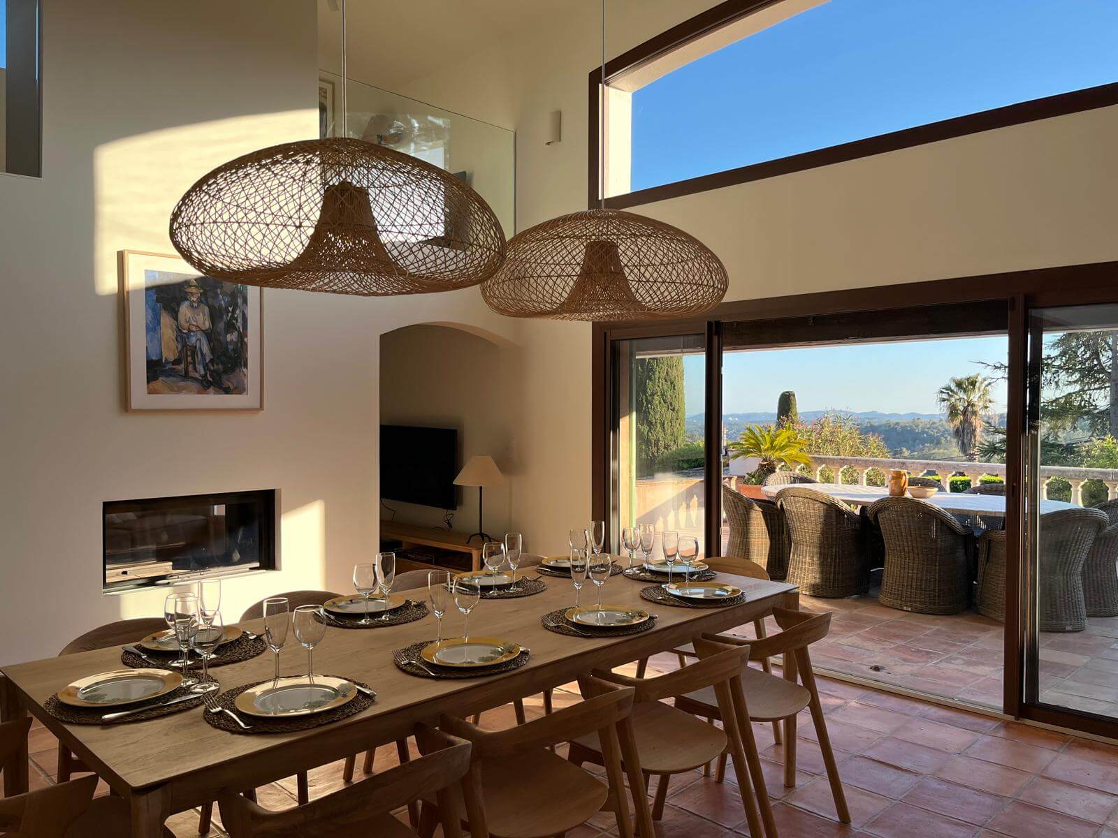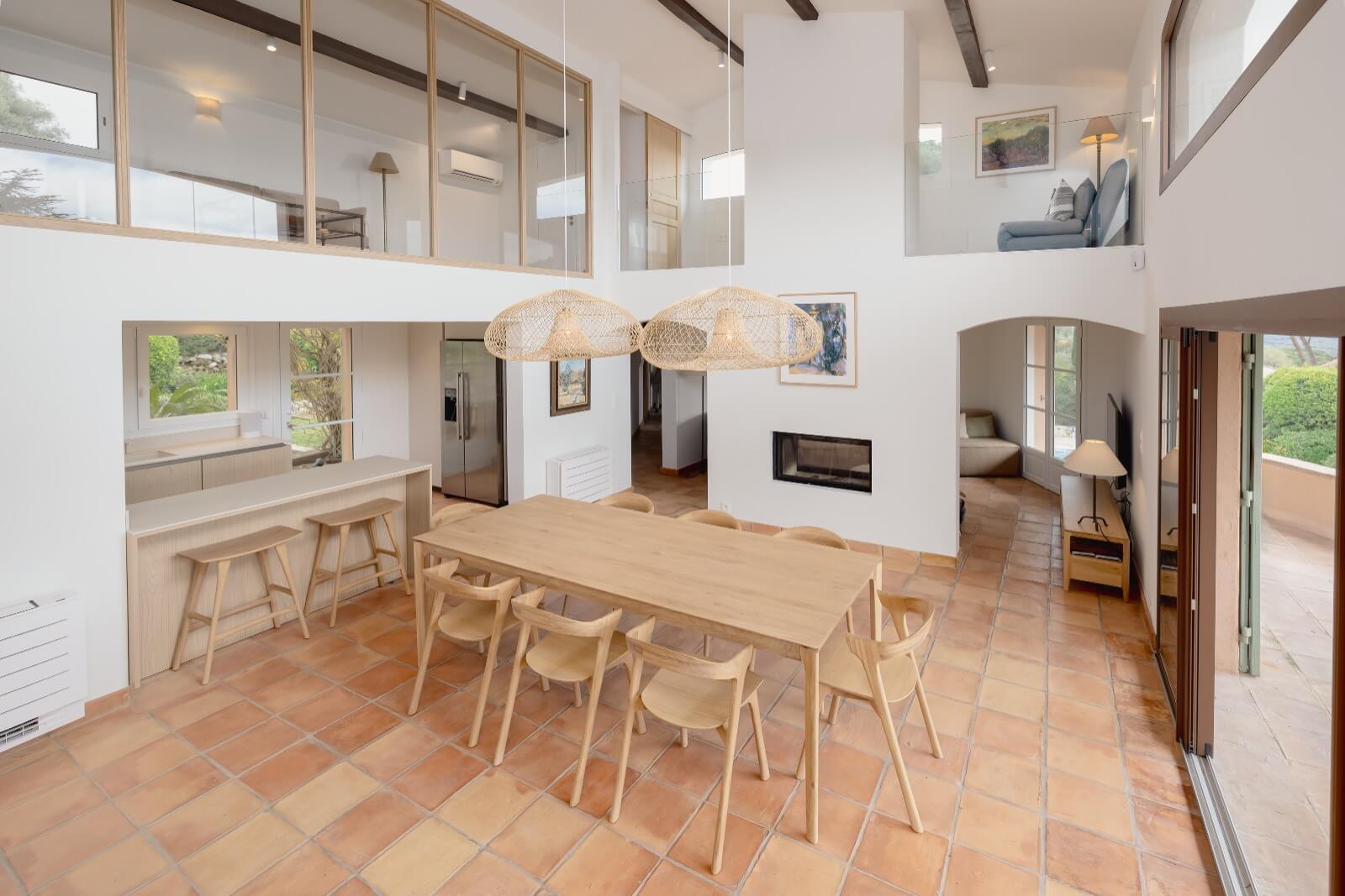 | Dining Room | The dining area showcases a new oak dining set, comfortably seating up to ten guests, with a door opening directly onto the terrace. This elegant setup enhances convivial meals with effortless indoor-outdoor flow. | ||