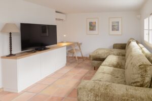 | Mezzanine | Air conditioned versatile mezzanine lounge that easily converts into an additional bedroom with a sofa bed (160cm) with large window looking out with a glimpse of the sea. For bedroom use, please enquire for details and fees. |
