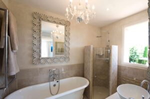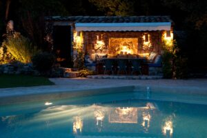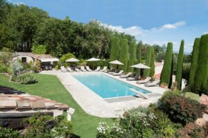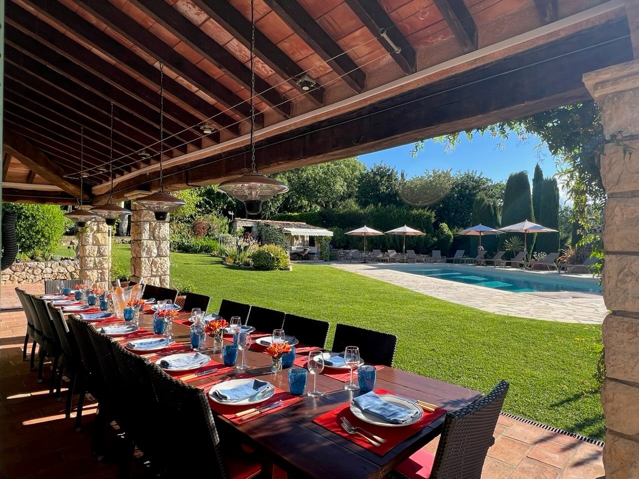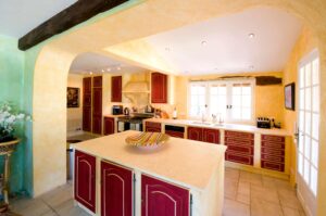 Kitchen | COOKWARE & KITCHEN UTENSILS, OVEN, MICROWAVE, DISHWASHER, ICE MAKER, FRIDGE / FREEZER, TERRACE | The open-plan Provencale rustic marble kitchen includes a five-burner range and two full-size electric ovens, a fridge, microwave and dishwasher. The large central island incorporates red and white wine chiller cabinets and a commercial ice machine in addition to an American-style fridge-freezer with ice machine. There is also a gas barbecue on the terrace outside the dining room. | |