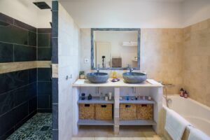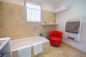 Bedroom 2 2 QUEEN SIZE BED, AIR CONDITIONING Double bedroom with large double bed, flat screen TV, and ensuite bathroom with bathtub, double vanity. Seperate toilet