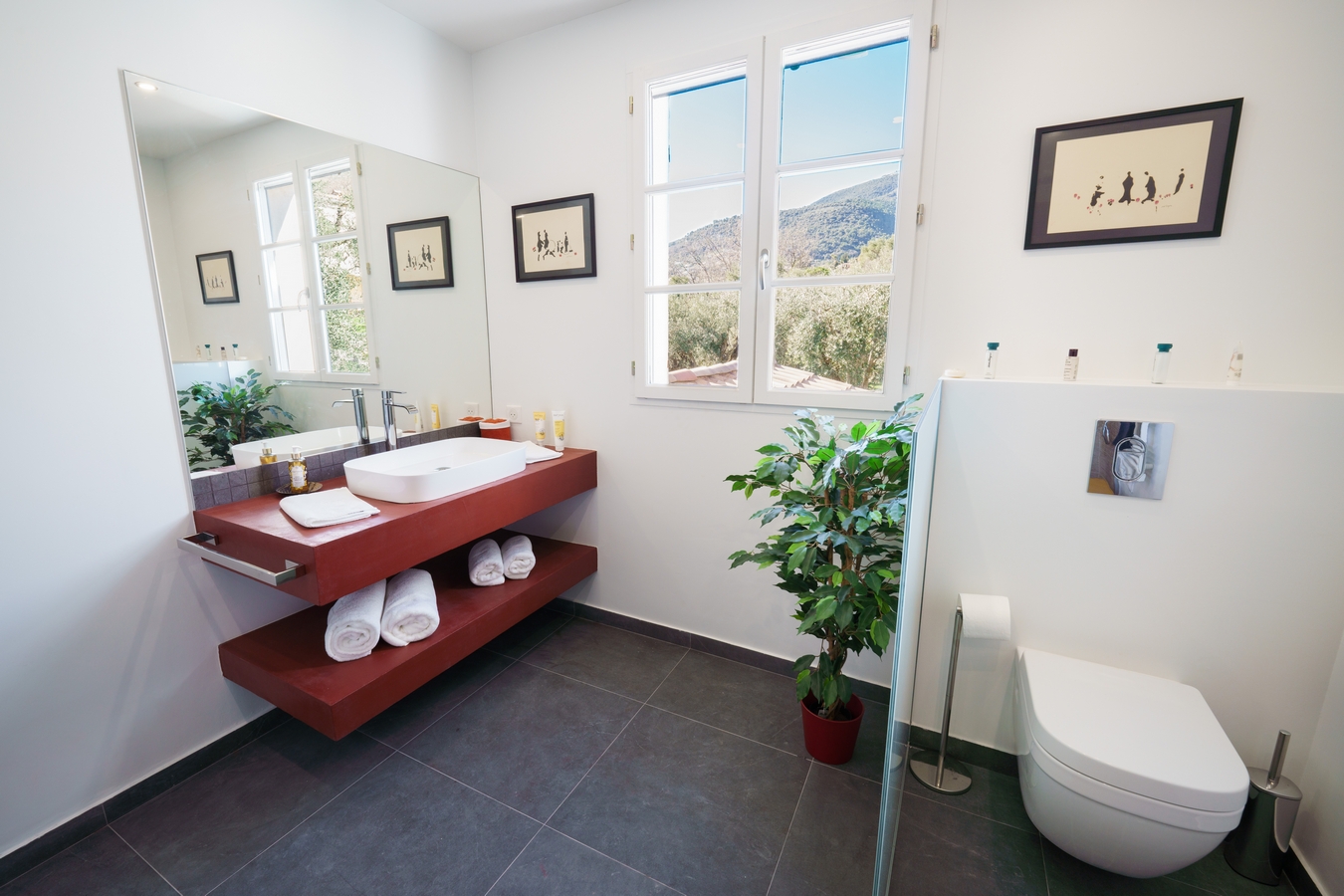 Living room Spacious living room with wood burner, flat screen TV. Opening onto the gardens. Air-conditioned.